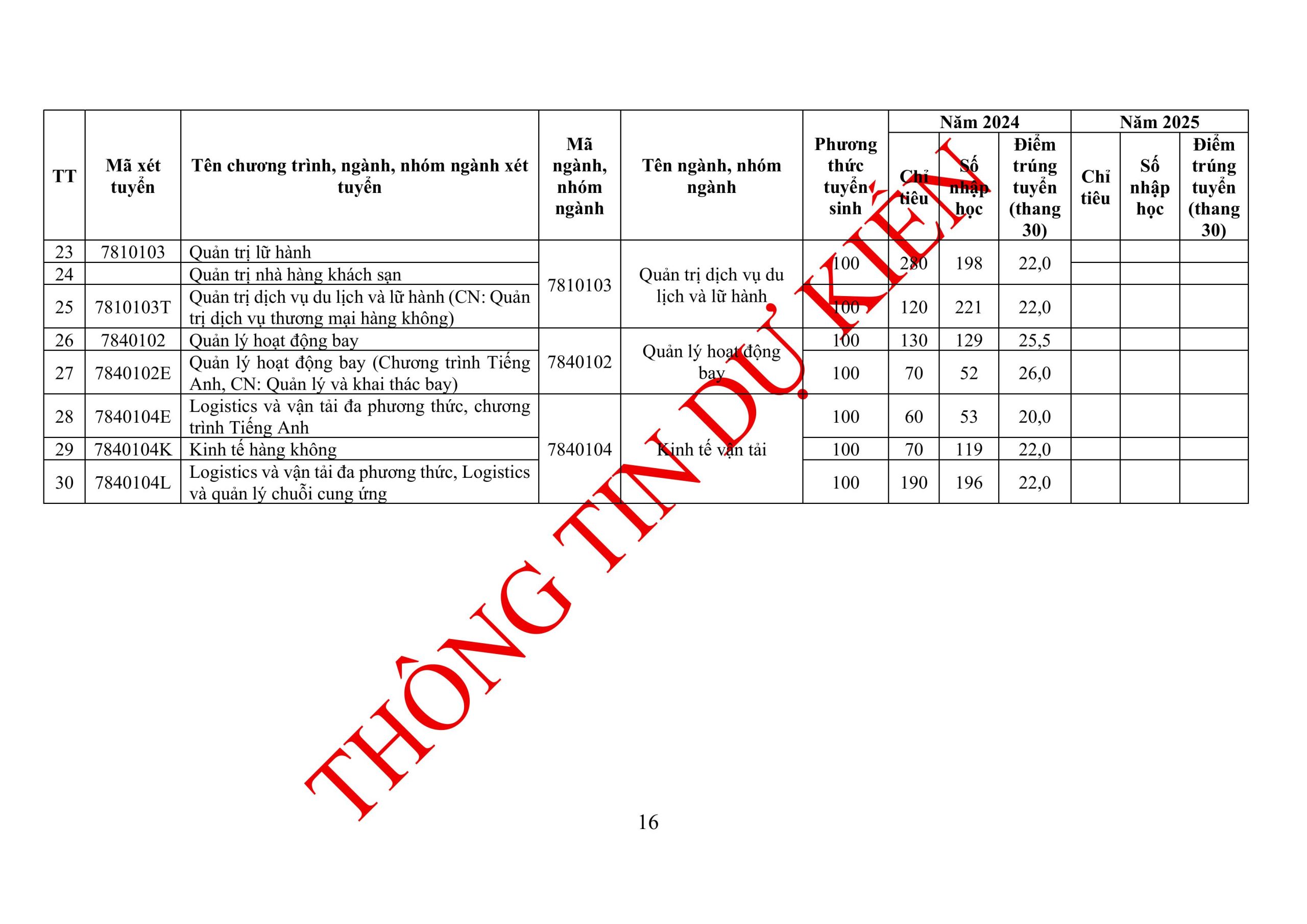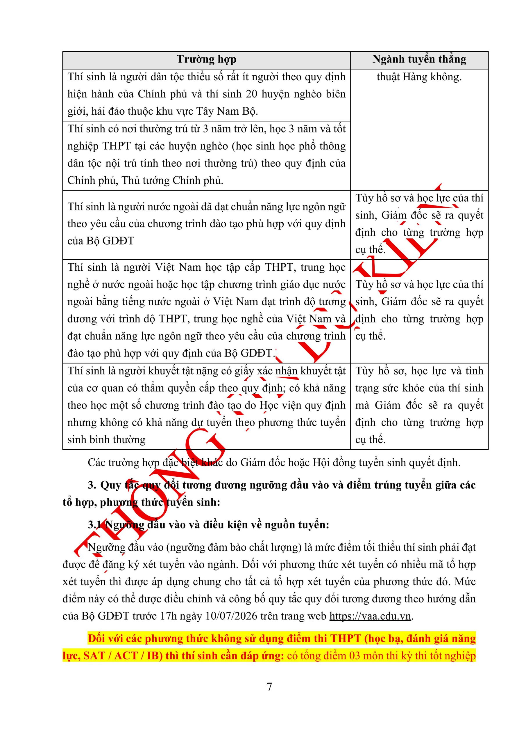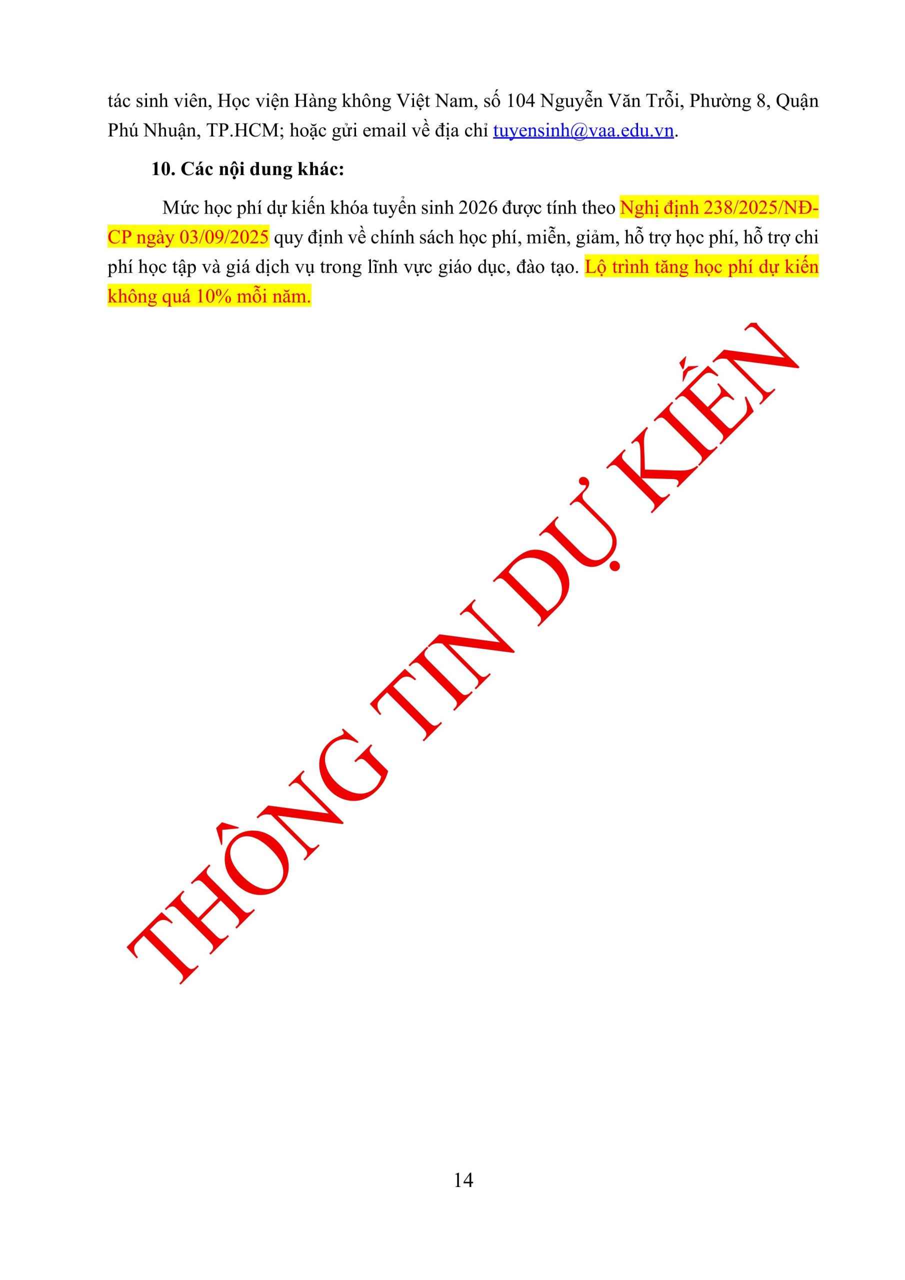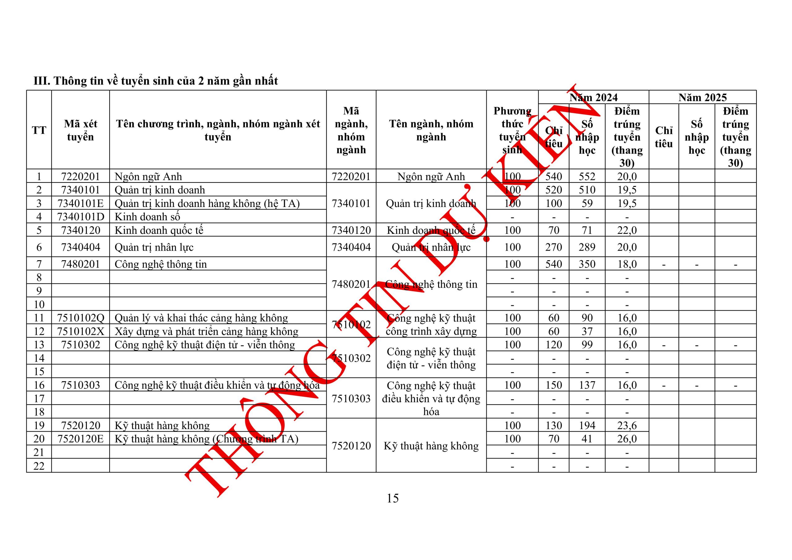 Thông tin tuyển sinh đại học chính quy năm 2026 (DỰ KIẾN) của Học viện Hàng không Việt Nam: