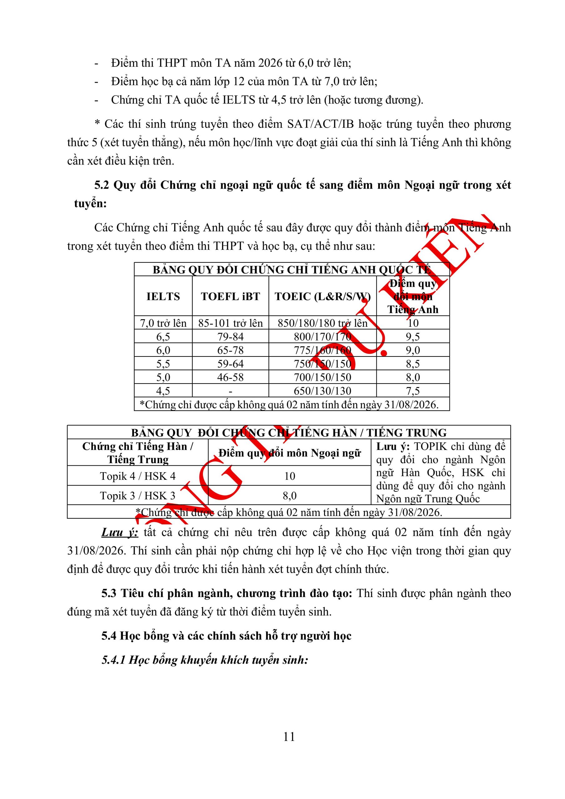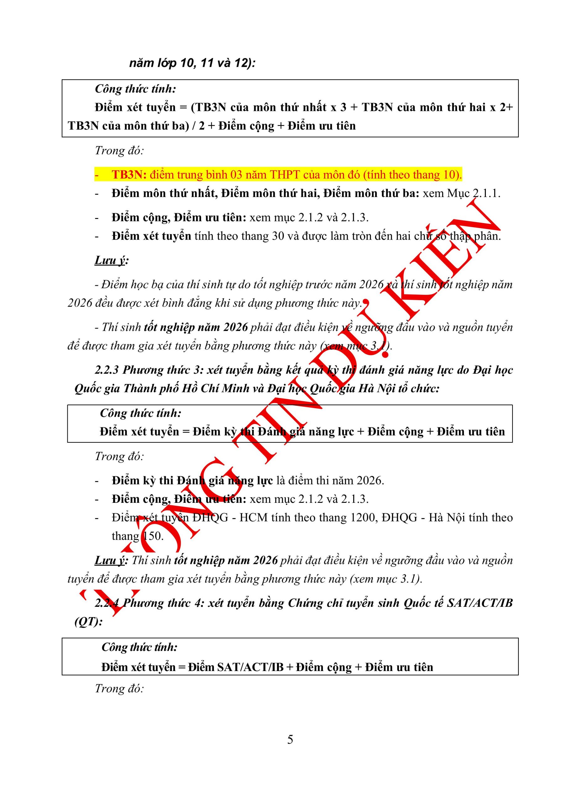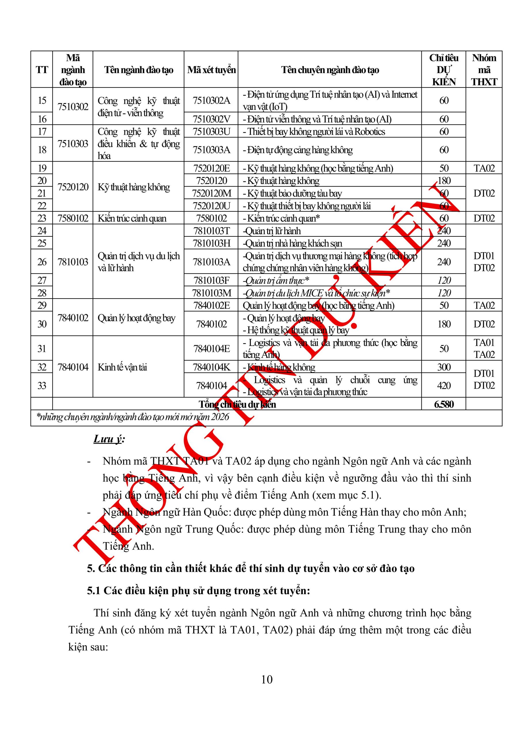 THÔNG TIN TUYỂN SINH ĐẠI HỌC CHÍNH QUY NĂM 2026 (DỰ KIẾN)